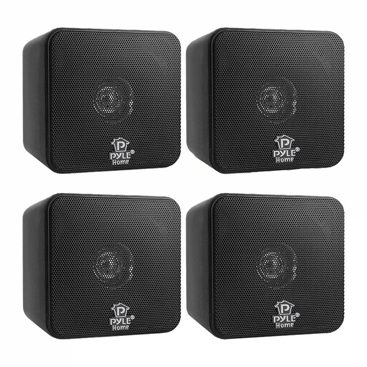 Pyle PCB4BK 4 Inch 200W Mini Cube Bookshelf Stereo Speakers, Black (4 Speakers)