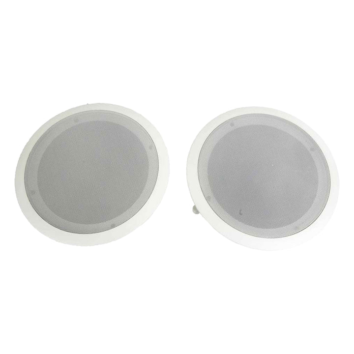 These pairs of 8-inch speakers can be used for in-wall and in-ceiling applications as they mount flush for a clean look. Perfect for custom installations, the PDIC series speakers feature polymer dome tweeters, impressive power handling capability, high-temperature voice coils, and high-efficiency response rates, all to produce a fuller and richer sound. Additionally, the 200-watt rated peak power and directable 0.5-inch polymer dome tweeter provide sound you'll love when jamming out to your favorite tunes. With convenient speaker terminals, these in-home speakers allow for quick and hassle-free speaker wire connection. The speaker set includes a cutout template for easy installation.