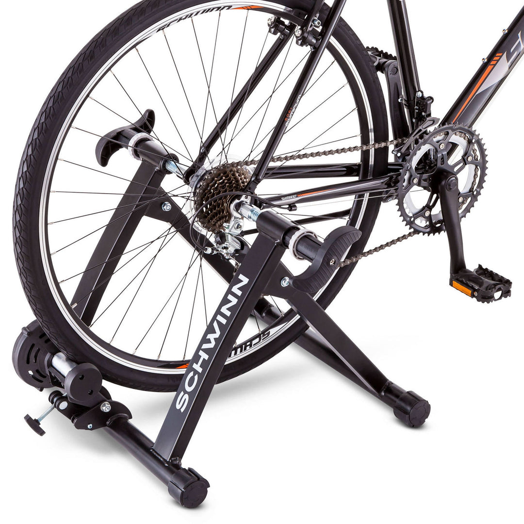 Transform your indoor training experience with the Schwinn Indoor Exercise Steel Bicycle Trainer with Magnetic Resistance Mechanism.