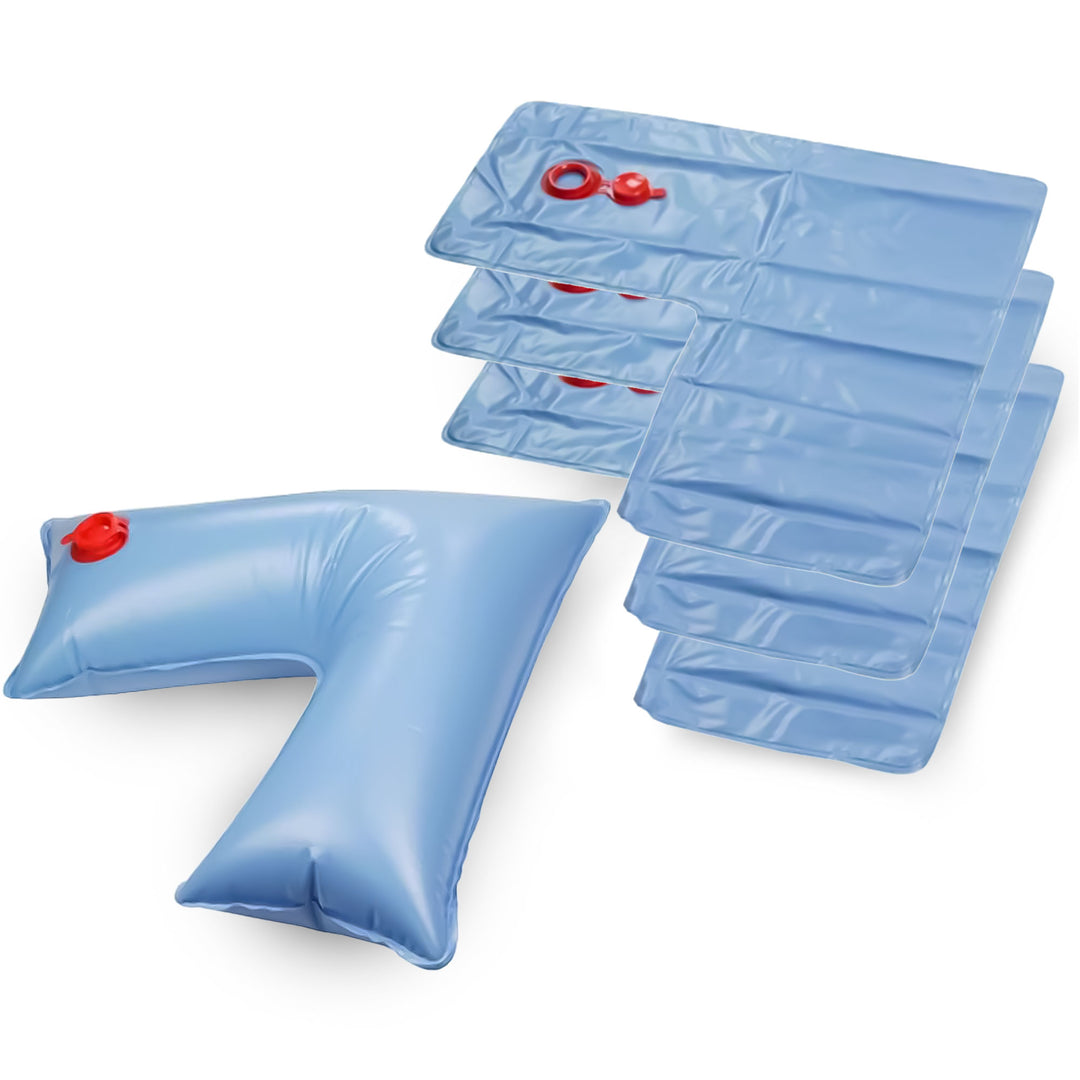 The double heat-sealed seems with a quarter-inch overlap, and the heavy-duty quality vinyl prevents any water leaks. With a leak-free valve, these pool cover weights will ensure to keep the water protected. These corner weights are designed to be large enough to be accepted by a garden hose that quickly fills or drains the water tube. When filling the water tube, make sure to fill the water halfway, so there is room for freeze expansion during the colder winter months. Each measuring 2-feet by 2-feet and 11 inches wide, these winterizing pool cover weights provide your pool with ultimate protection.