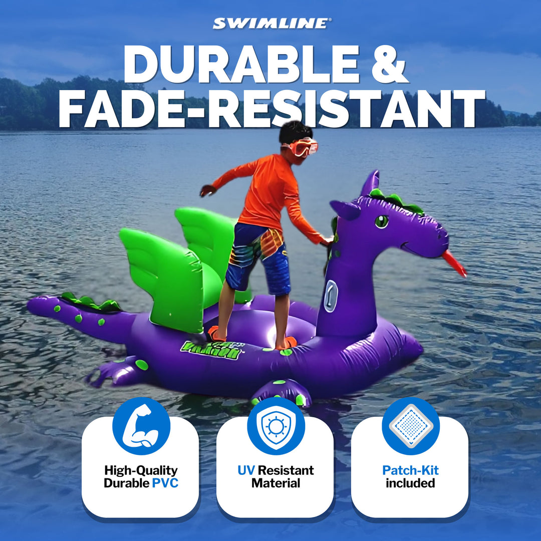 Swimline Giant 115" Inflatable Sea Dragon Ride-On Pool Float Lake Raft, Purple