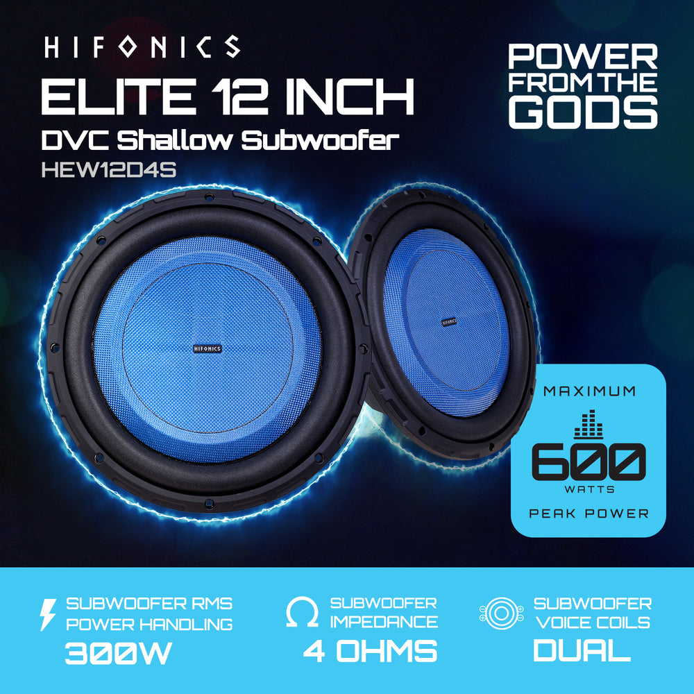 Hifonics ELITE 12” Shallow Subwoofer Dual Voice Coil Car Audio Speaker, 600 Watt