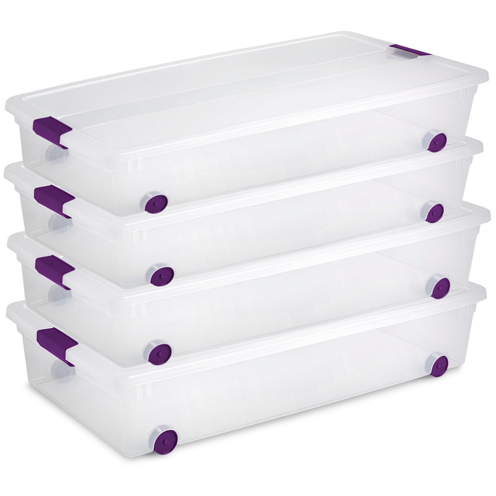 Sterilite 60 Qt ClearView Latch Wheeled Underbed Stackable Storage Box, 4 Pack