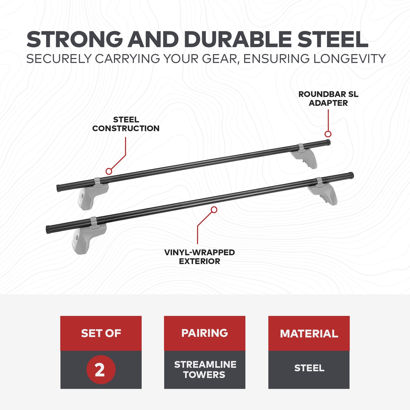 Yakima RoundBar Small 48” Steel Round Roof Rack System Crossbars, Set of 2