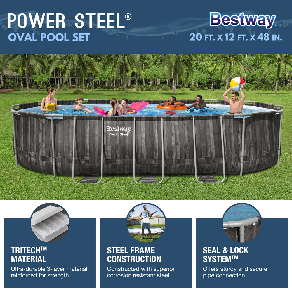Bestway Power Steel 20' x 12' x 48" Oval Above Ground Outdoor Swimming Pool Set