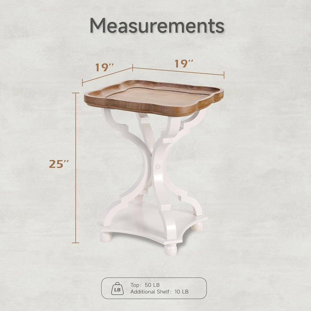 COZAYH Square Rustic Wooden Accent Tray Top Nightstand Side Table, White Legs