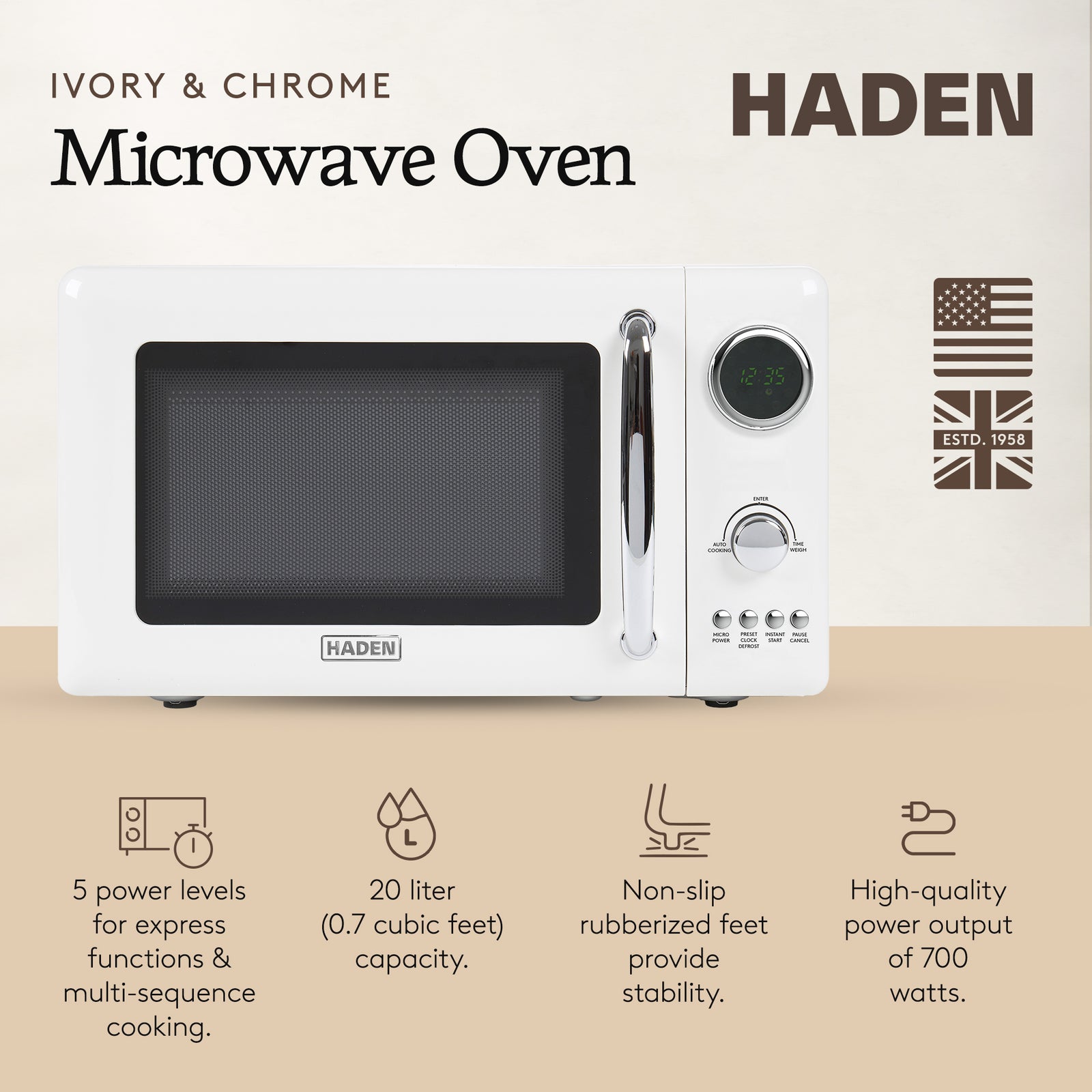 Haden 700 Watt 0.7 Cubic Ft Microwave w/Digital Controls, Ivory/Chrome(Open Box)