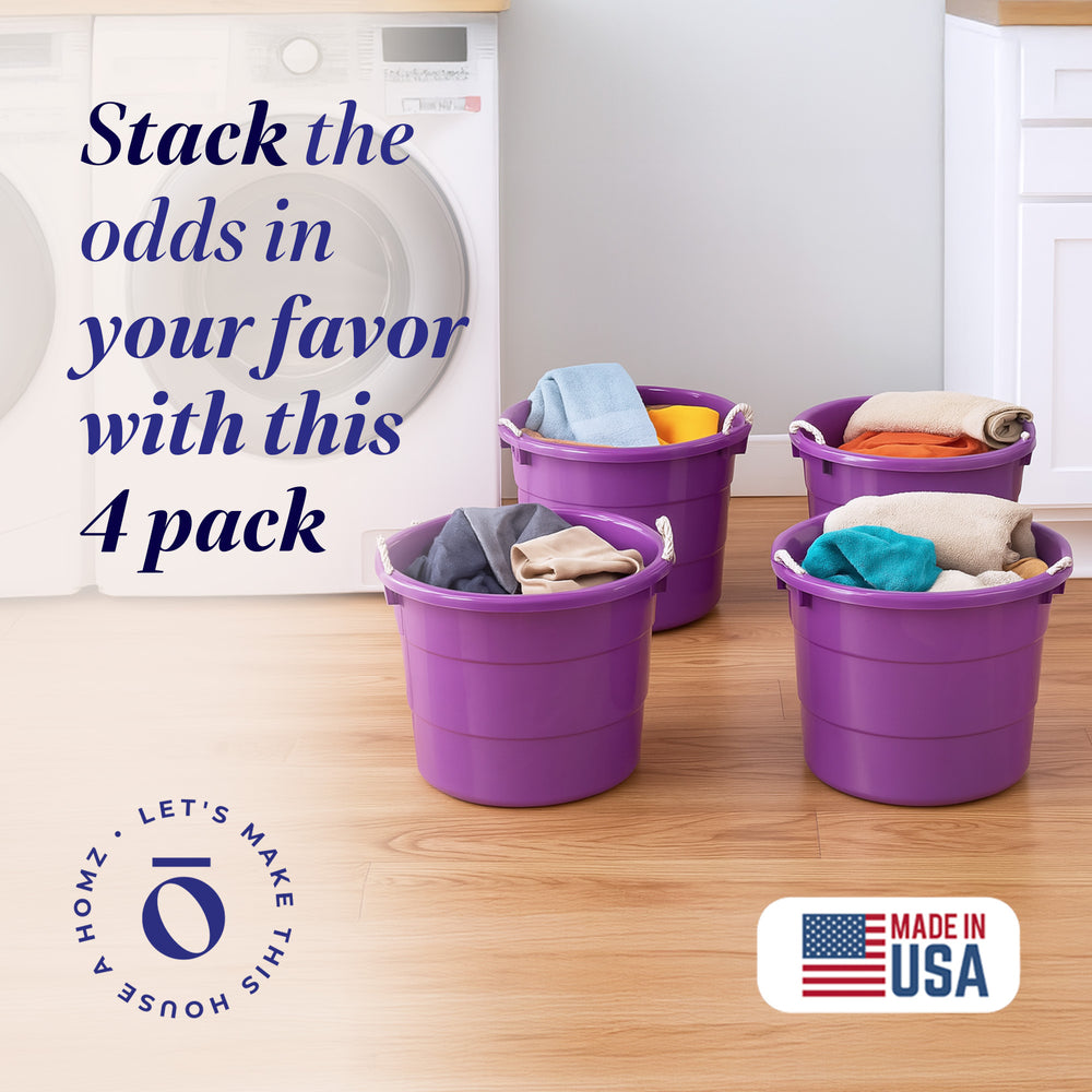 Homz 17 Gallon Indoor Outdoor Storage Bucket w/ Rope Handles, Orchid (4 Pack)