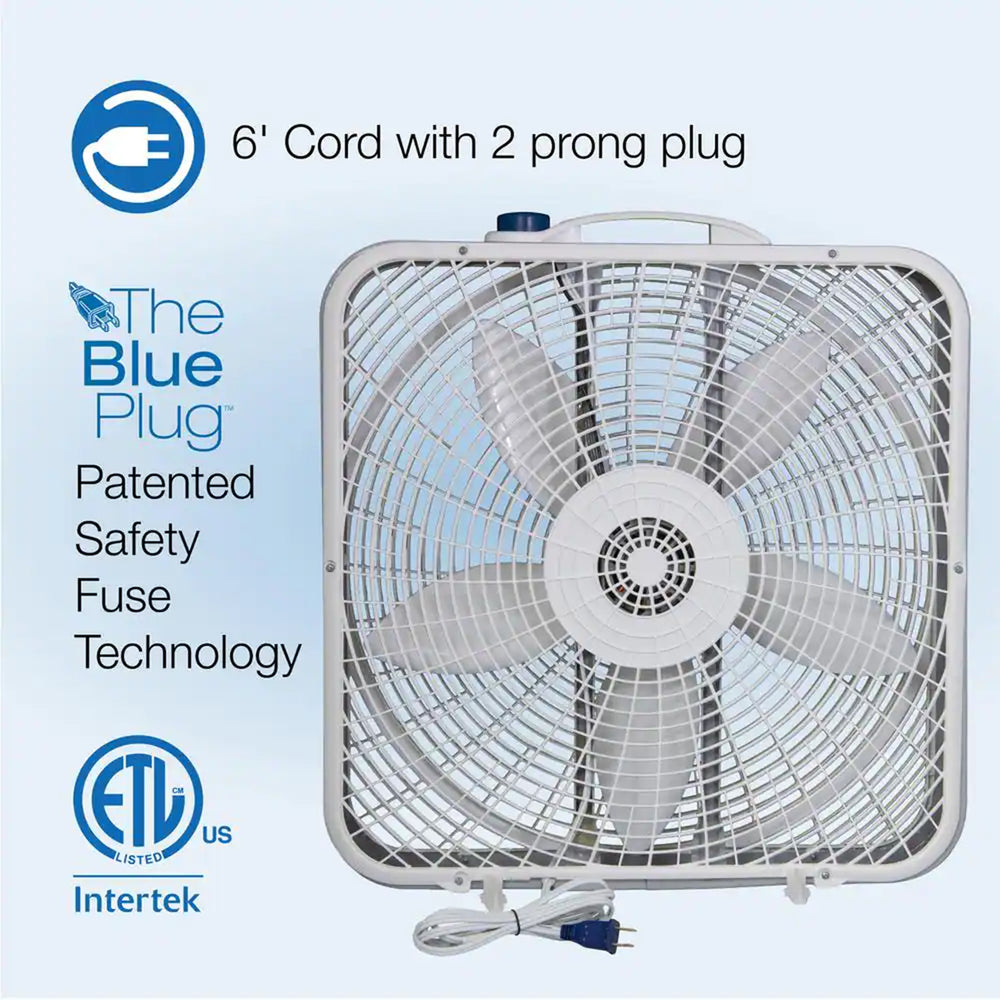 Lasko 20" 3-Speed Weather Shield Performance Box Fan w/ Easy Carry Handle, White