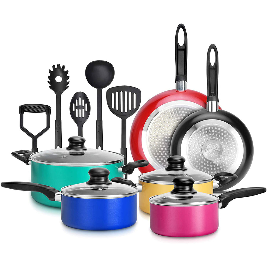 NutriChef 20 Piece Nonstick Kitchen Cookware Pots & Pans Set, Bronze (4 Pack)
