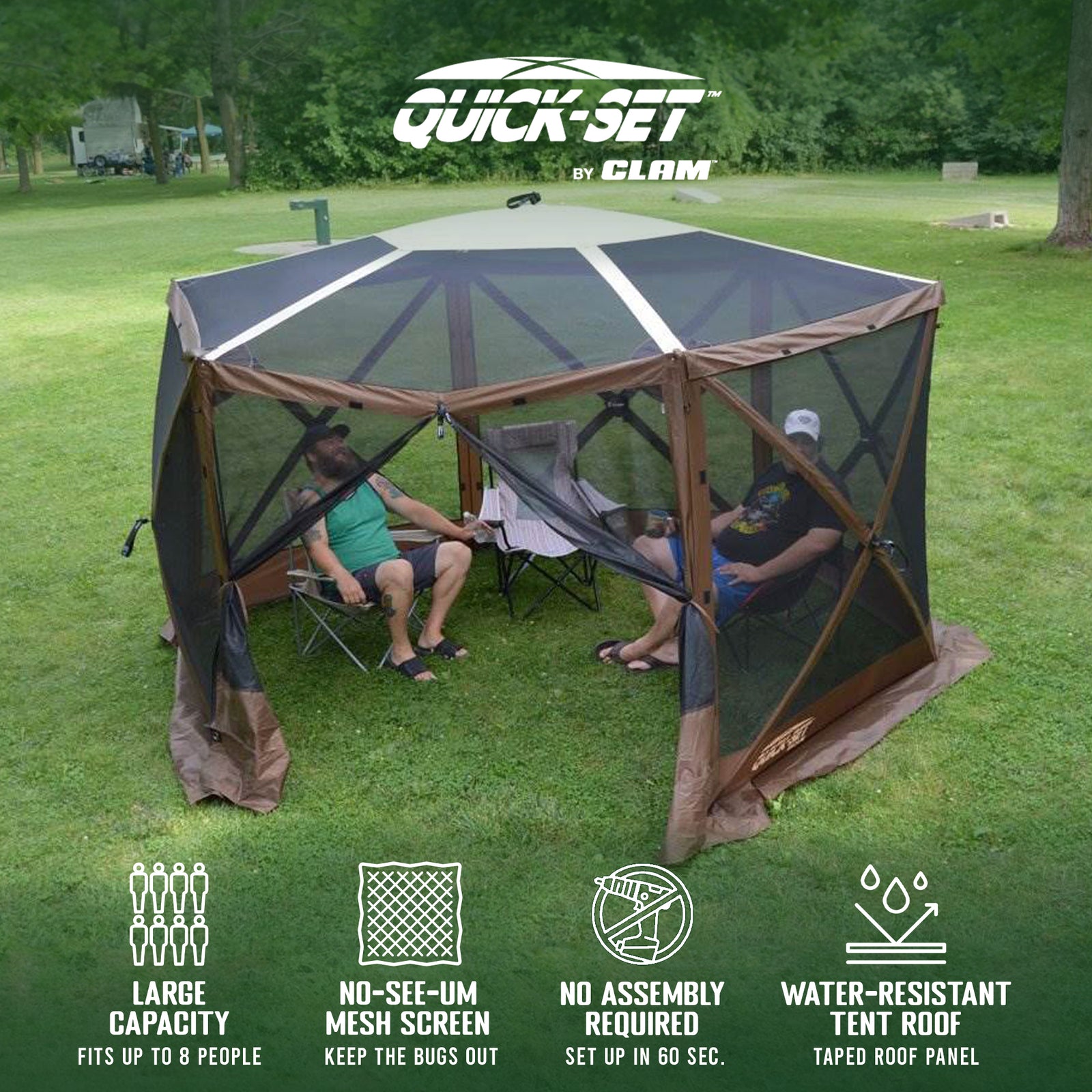 Clam Quick Set Escape Sky Screen Portable Camping Outdoor Gazebo Shelter, Brown