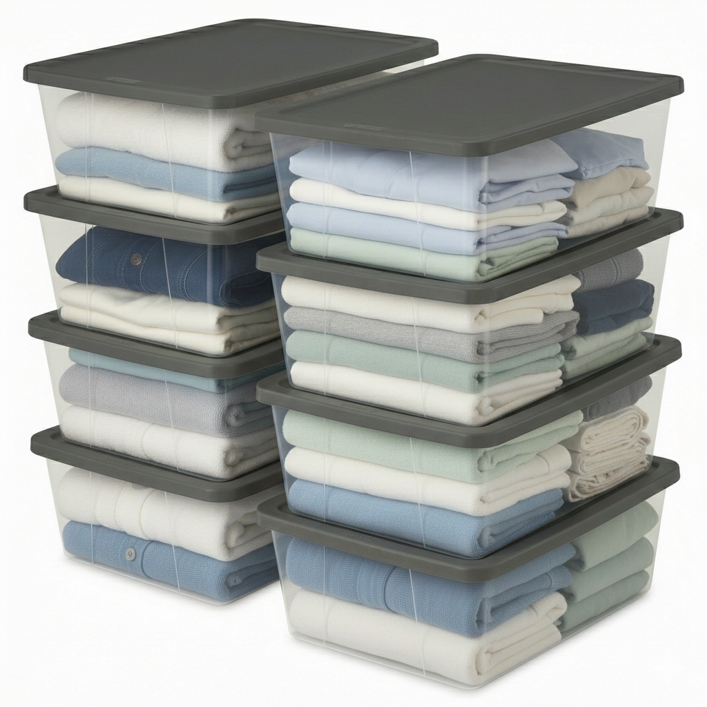 Homz 15.5 Qt Plastic Stackable Home Storage Container w/Lid, Gray Latch (8 Pack)