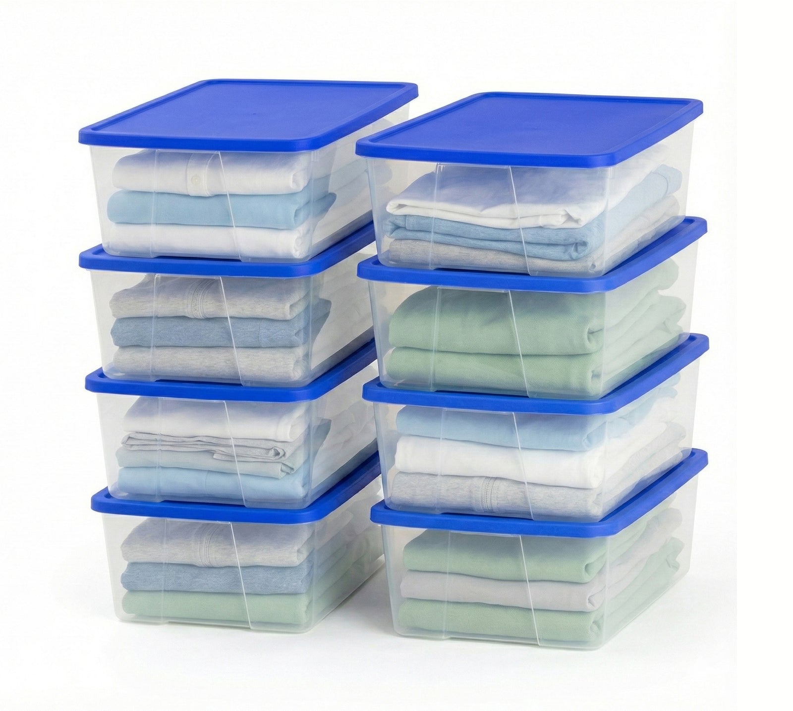 Homz 12 Qt Stackable Plastic Storage Container w/ Snaplock Lid, Blue (8 Pack)