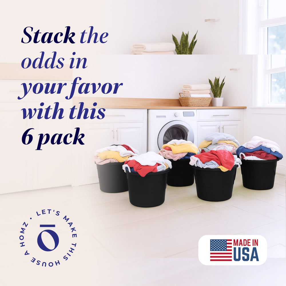 Homz 17 Gal Plastic Open Storage Round Utility Tub with Handles, Black (3 Pack)