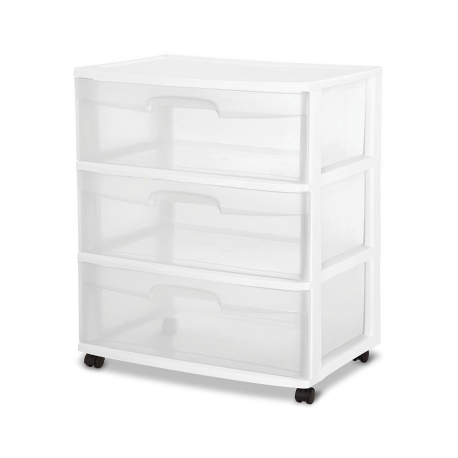 Sterilite Wide 3 Drawer Storage, Plastic Rolling Organization Cart, White Frame