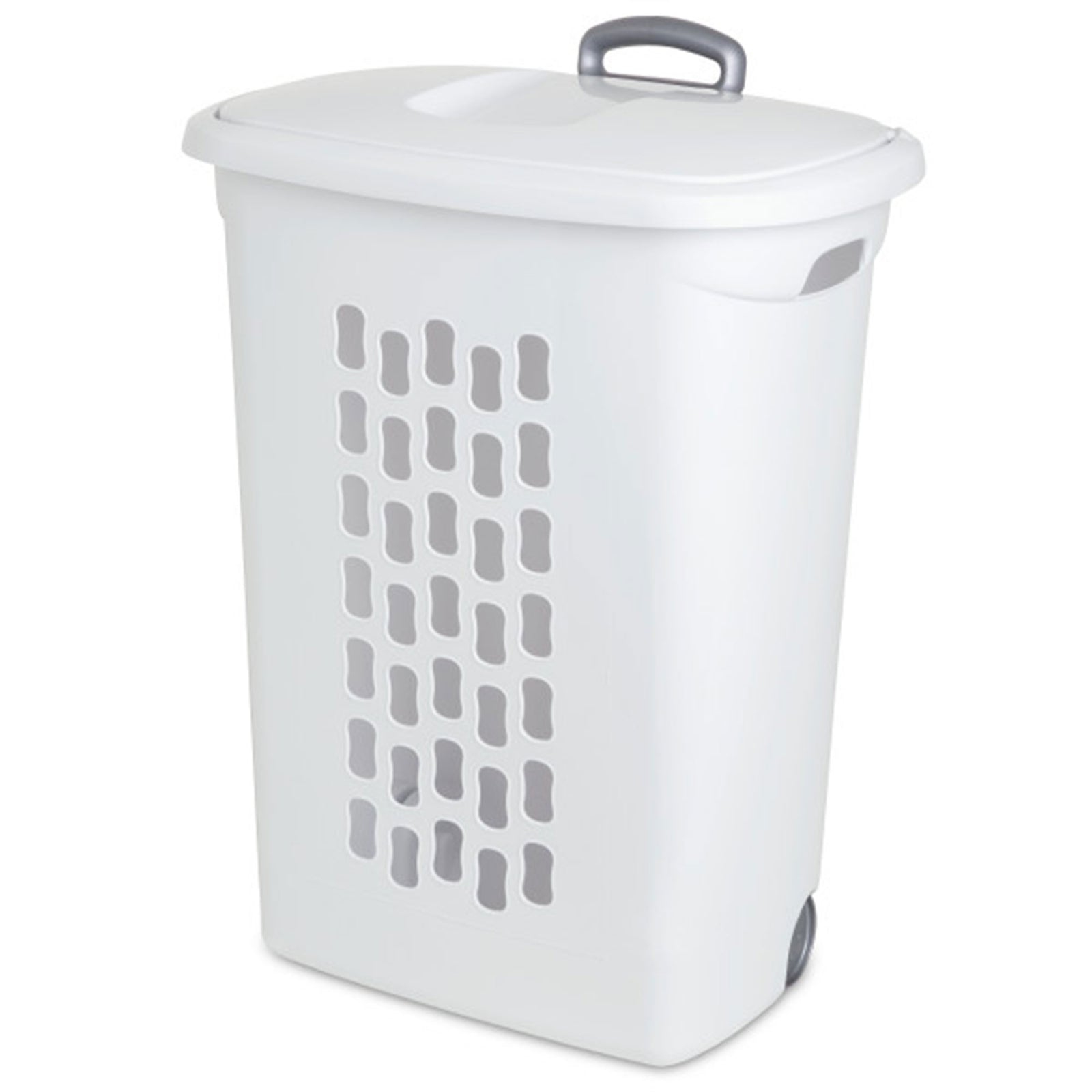 Sterilite White Laundry Hamper With Lift-Top, Wheels, And Pull Handle, 6 Pack