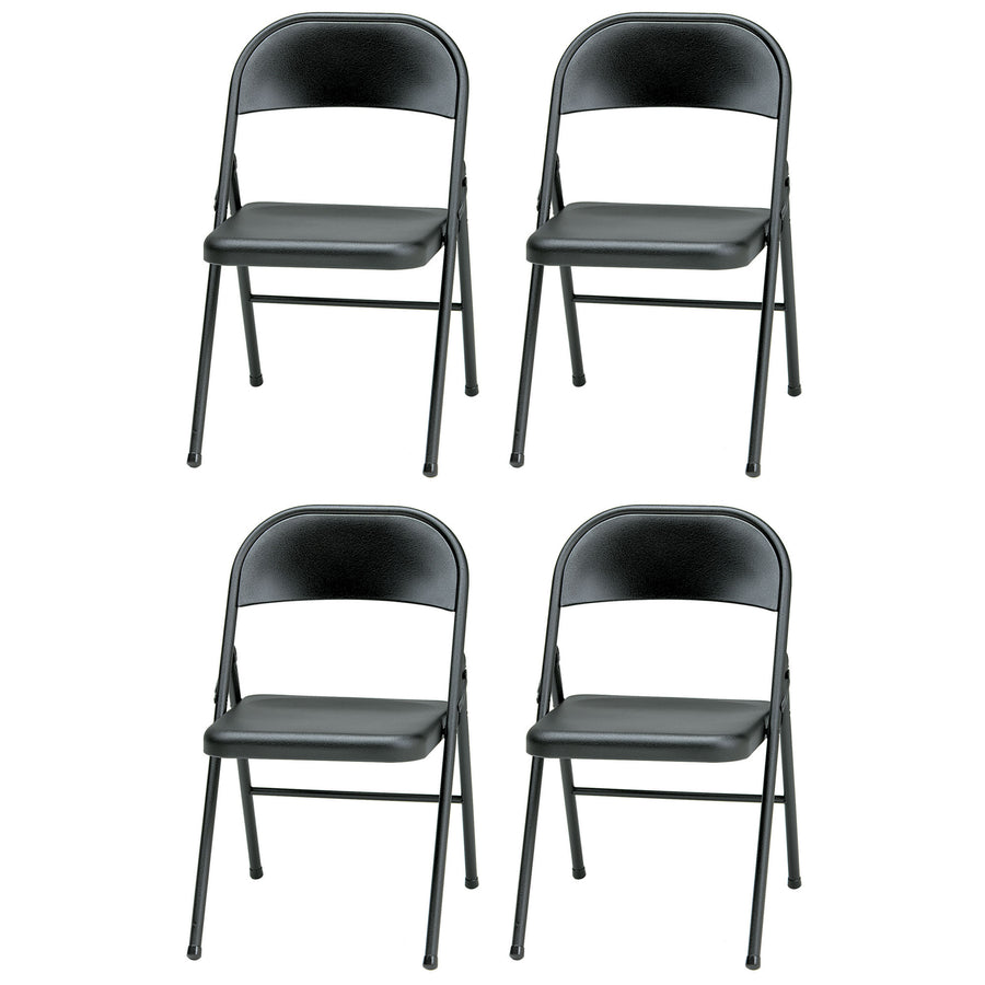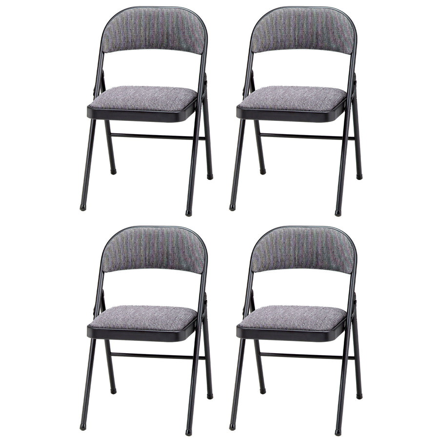 MECO Sudden Comfort Deluxe Metal Fabric Padded Folding Chair Set, Black (4 Pack)