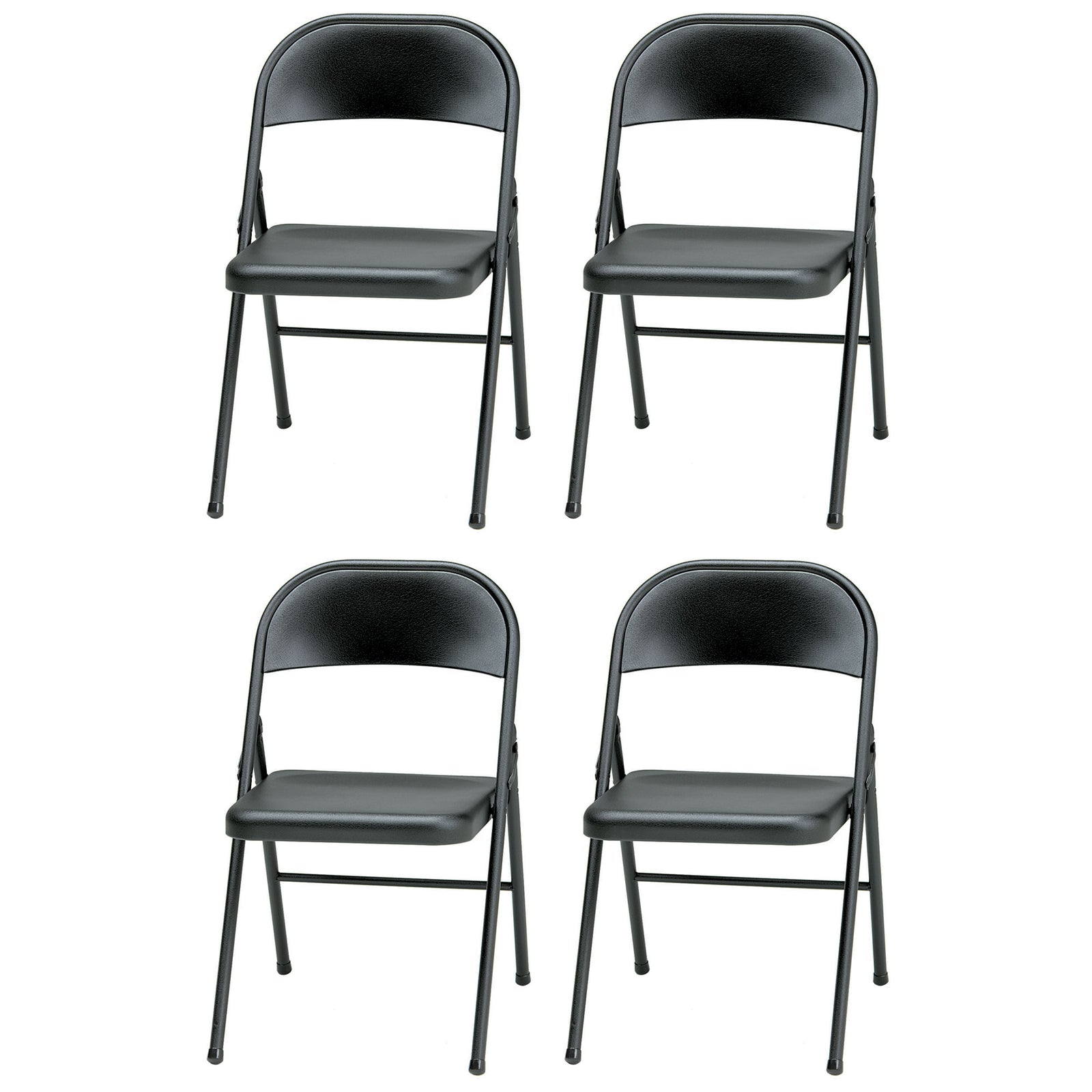 MECO Sudden Comfort All Steel Indoor Outdoor Folding Chair Set, Black (Set of 4)