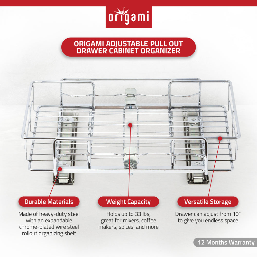 Origami R3 General Purpose Foldable 3-Tiered Shelf Storage Rack & Wheels, Pewter