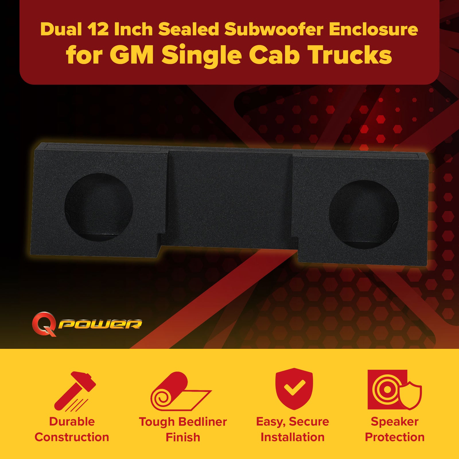 Q Power QBOMB Dual 12" Sealed Subwoofer Enclosure GM Single Cab Behind Seat Fit