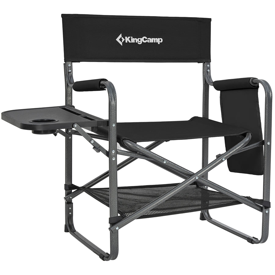 KingCamp Padded Folding Director Chair w/ Side Table & Pockets, Black (Open Box)
