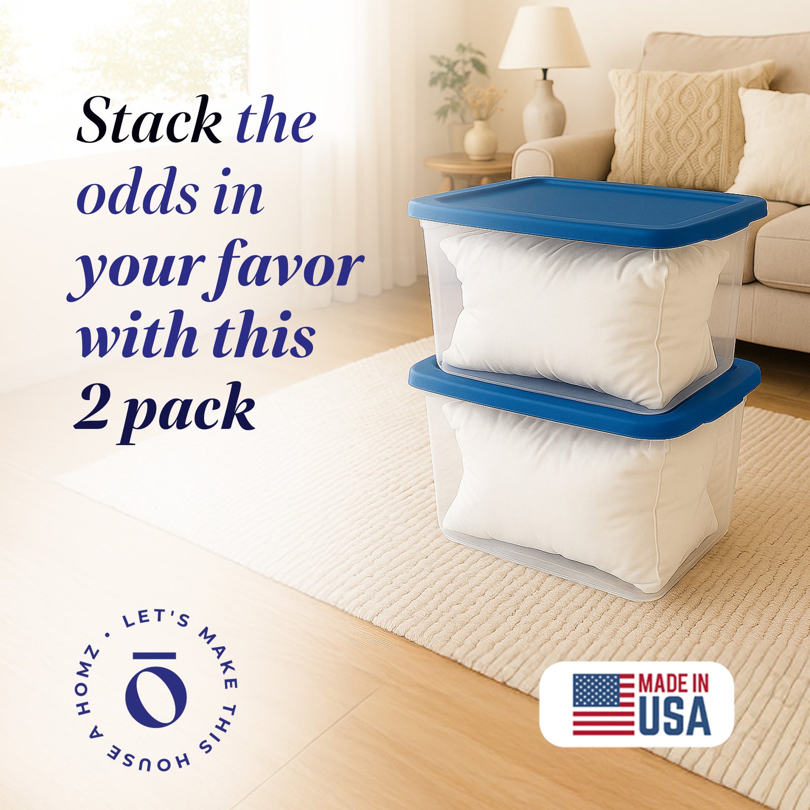 Homz 41Qt Stackable Plastic Storage Containers w/Snap-Close Lid, (2 Pack) (Used)