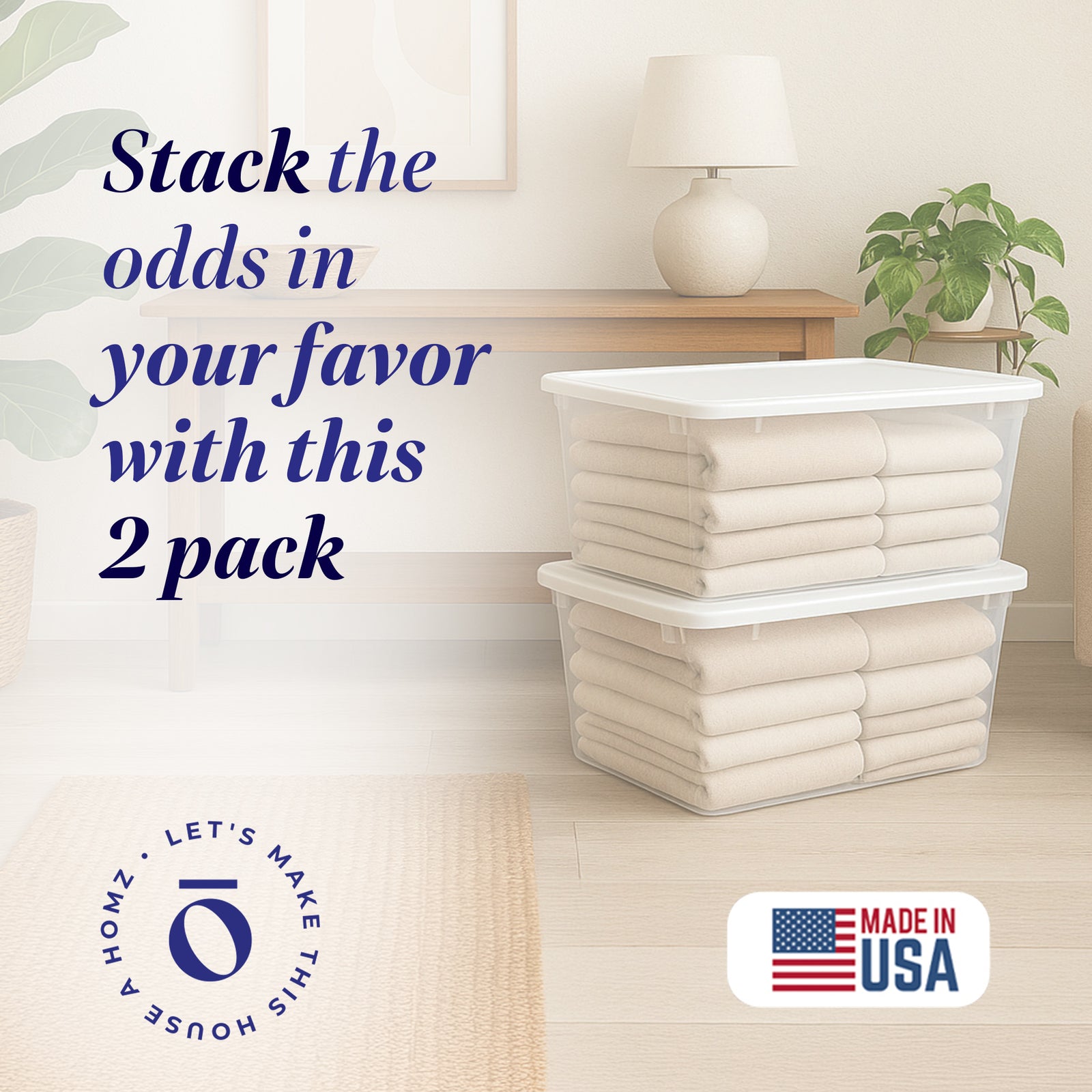 Homz 64 Qt Secure Latch Large Clear Stackable Storage Container w/ Lid (2 Pack)
