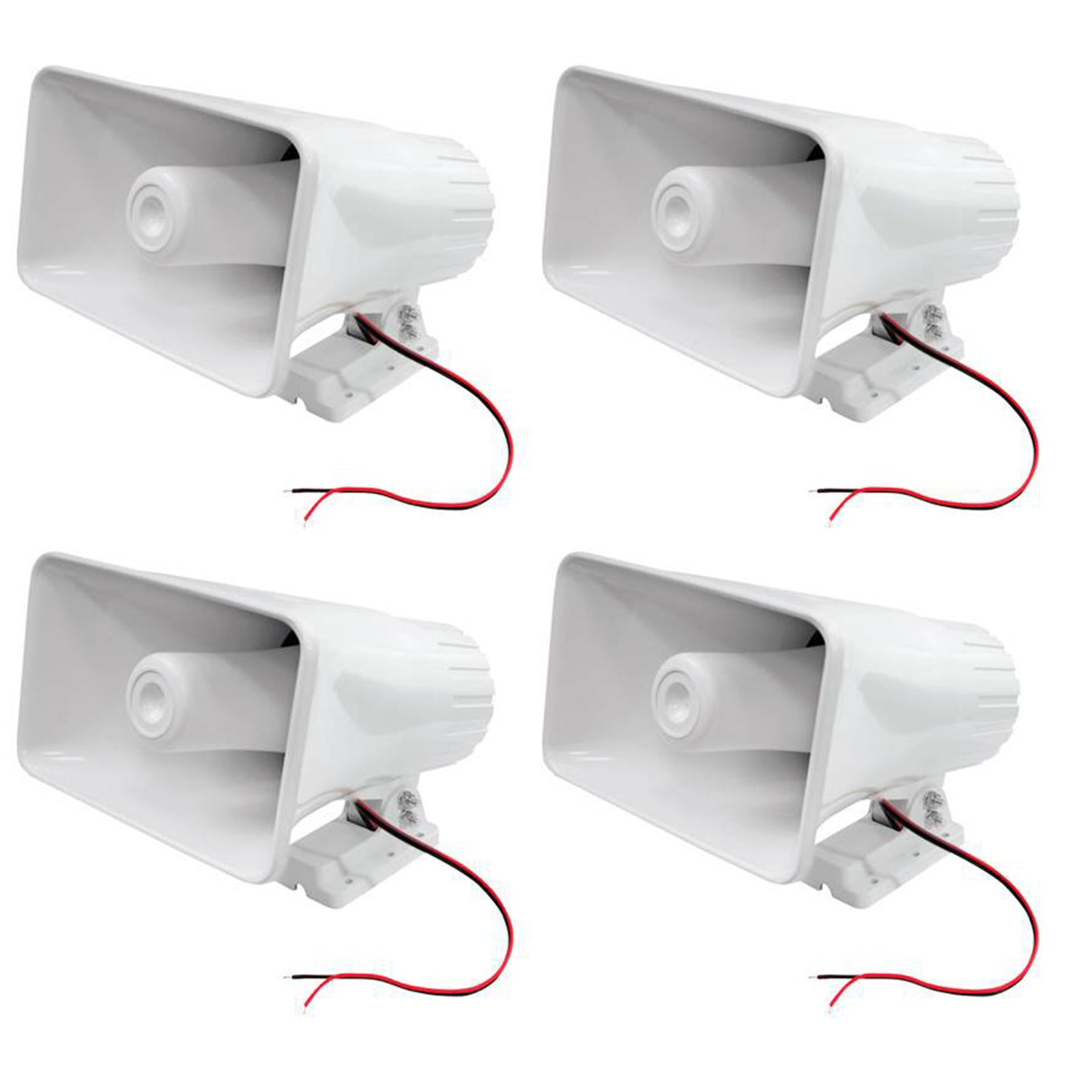 PYLE Aluminum 5.6" Indoor Outdoor PA Horn Speaker 70 Volt 8 Ohms, White (4 Pack)