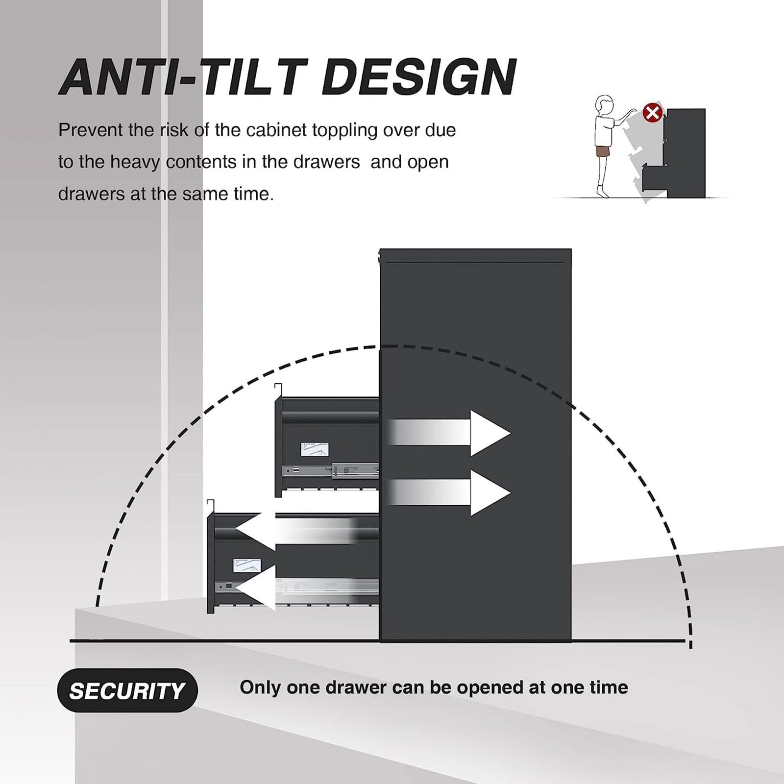 AOBABO 35" Locking 2 Drawer Metal Office Storage Filing Cabinet, Black(Open Box)