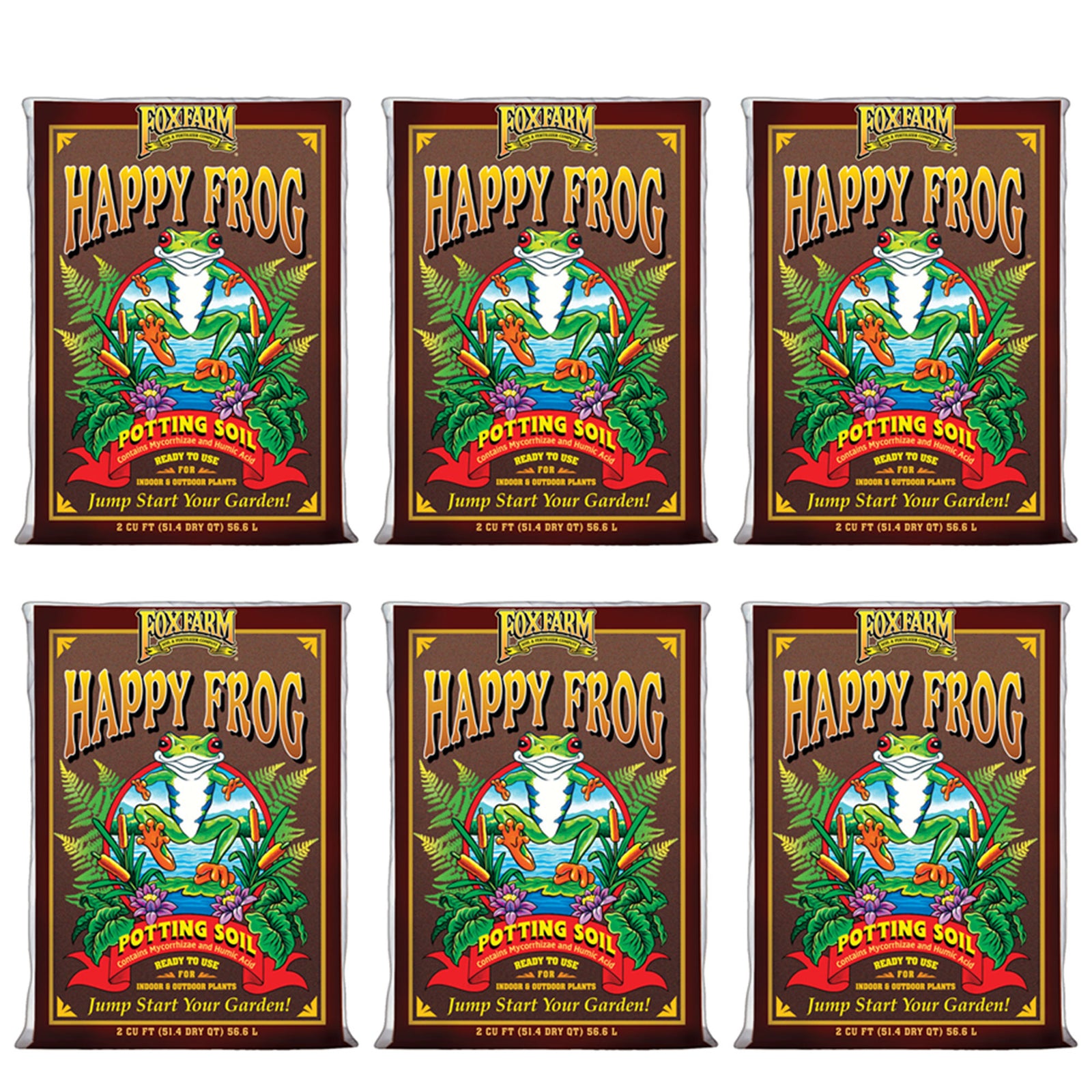 FoxFarm FX14047 Happy Frog pH Adjusted Garden Potting Soil Bag, 2 Cu Ft (6 Pack)