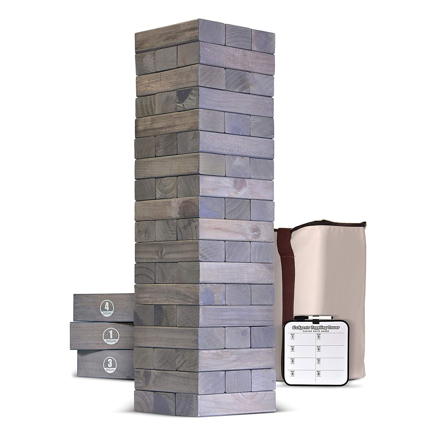 GoSports Giant 5 Foot Wooden Toppling Tower Backyard Lawn Game, Gray (Open Box)