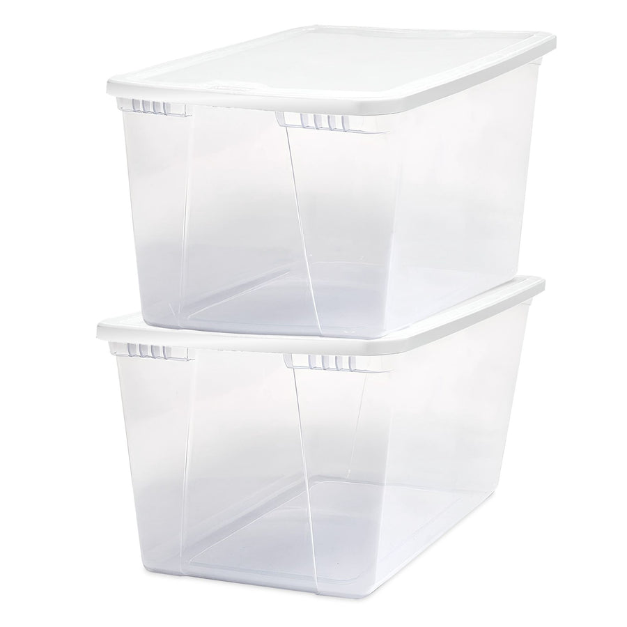 Homz 112 Qt Multipurpose Stackable Storage Bin with Latching Lid, Clear (2 Pack)