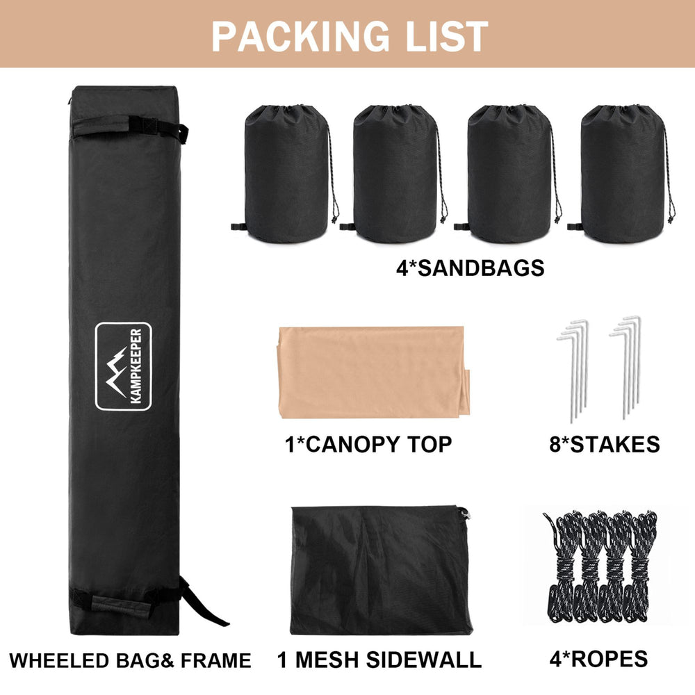KAMPKEEPER 10x10 Pop Up Canopy Tent with 2 Sidewalls for Outdoor Use, Khaki