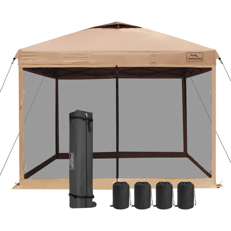 KAMPKEEPER 10x10 Pop Up Canopy Tent with Netting, Outdoor Sun Shade, Khaki