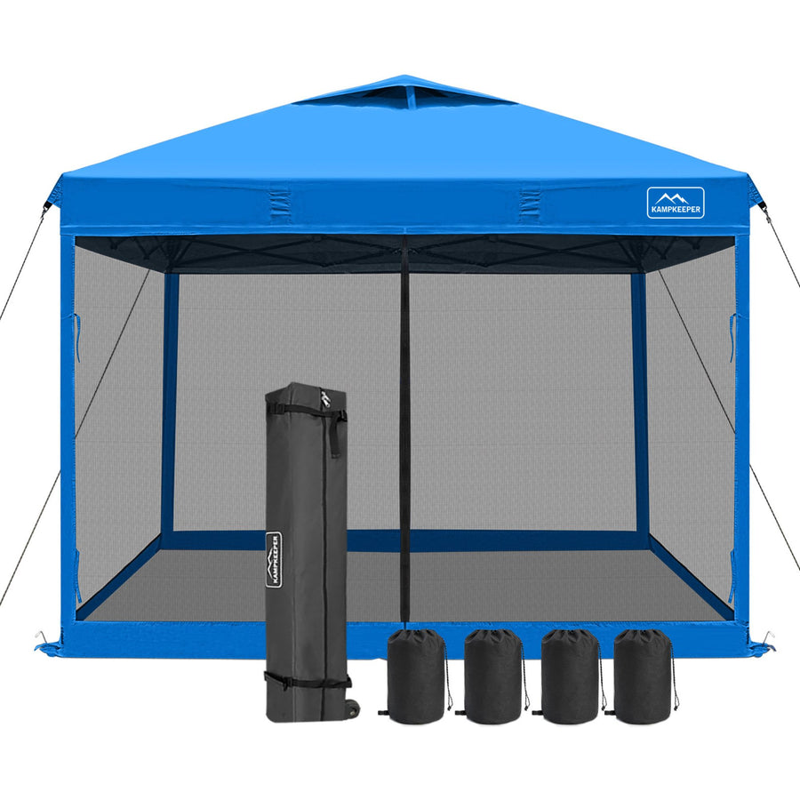 KAMPKEEPER 10x10 Pop Up Canopy Tent with 2 Sidewalls for Outdoor Use, Blue