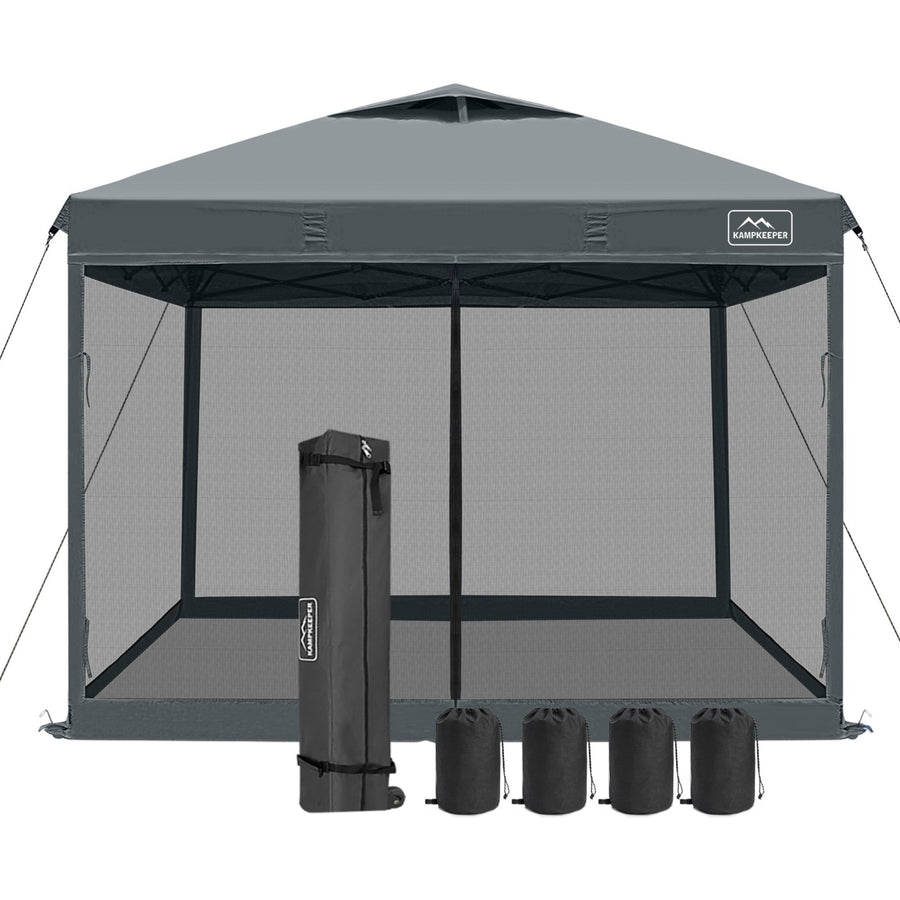 KAMPKEEPER 10x10 Pop Up Canopy Tent with Netting, Outdoor Sun Shade, Dark Grey