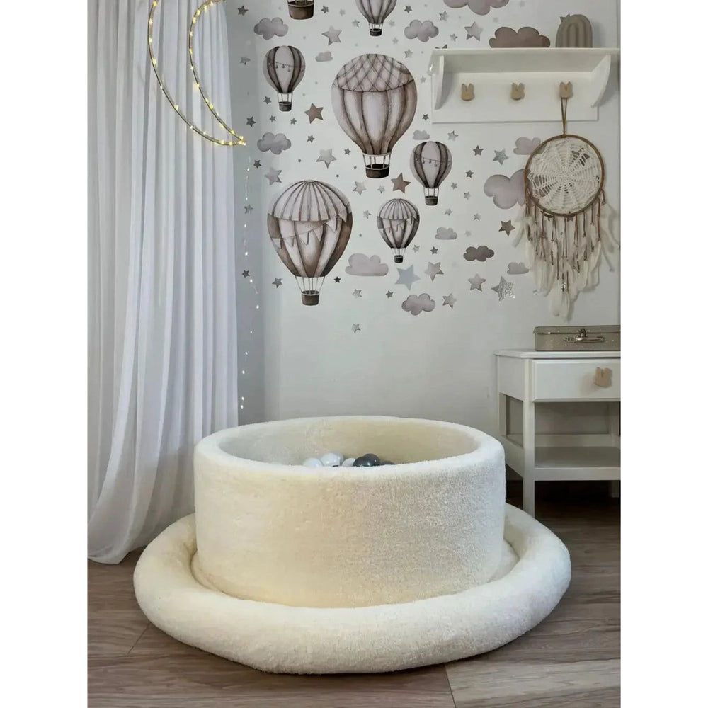 KIDKII Round Ball Pit Soft Teddy Indoor Play Toy for Toddlers, 200 Balls, Cream