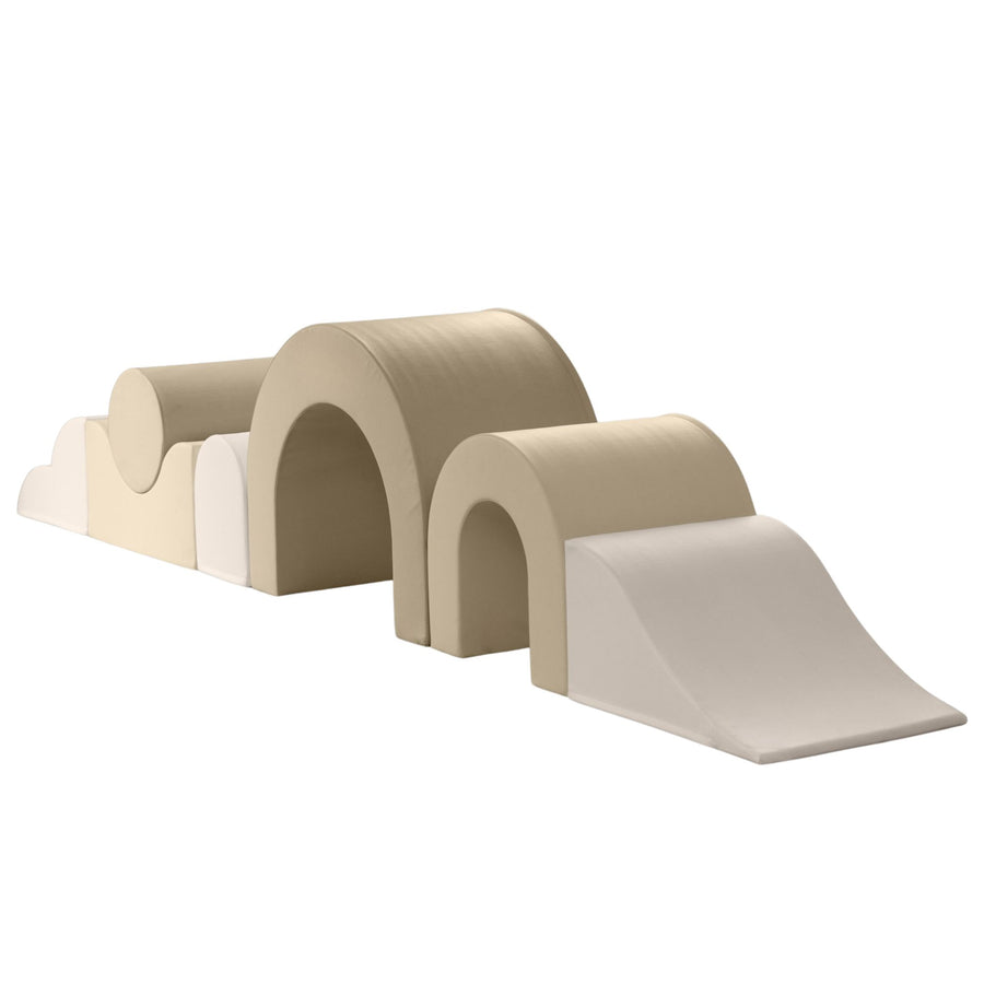 KIDKII Lux Play Set 7-Piece Firm Foam Climbing and Motor Skill Play Kit, Beige