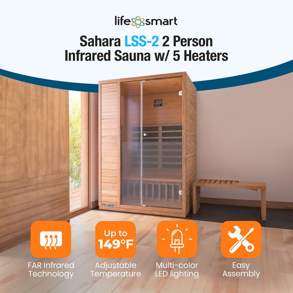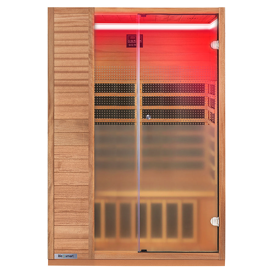 Lifesmart 2 Person Infrared Sauna w/ 5 Heaters, Natural Light Wood (Open Box)