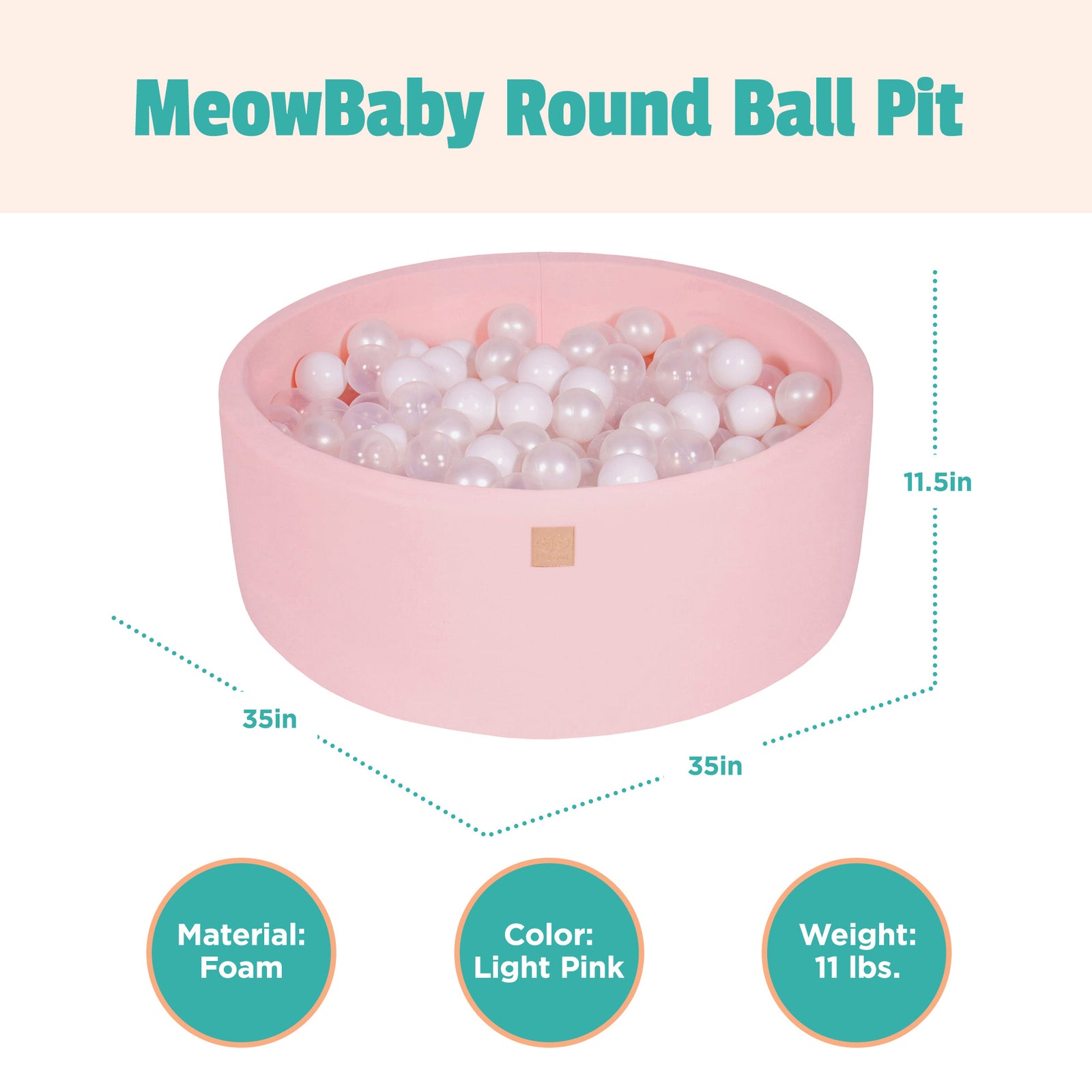 MeowBaby Round 35 x 11.5 Inch Baby Foam Ball Pit w/ 200 Balls, Light Pink/Pearl