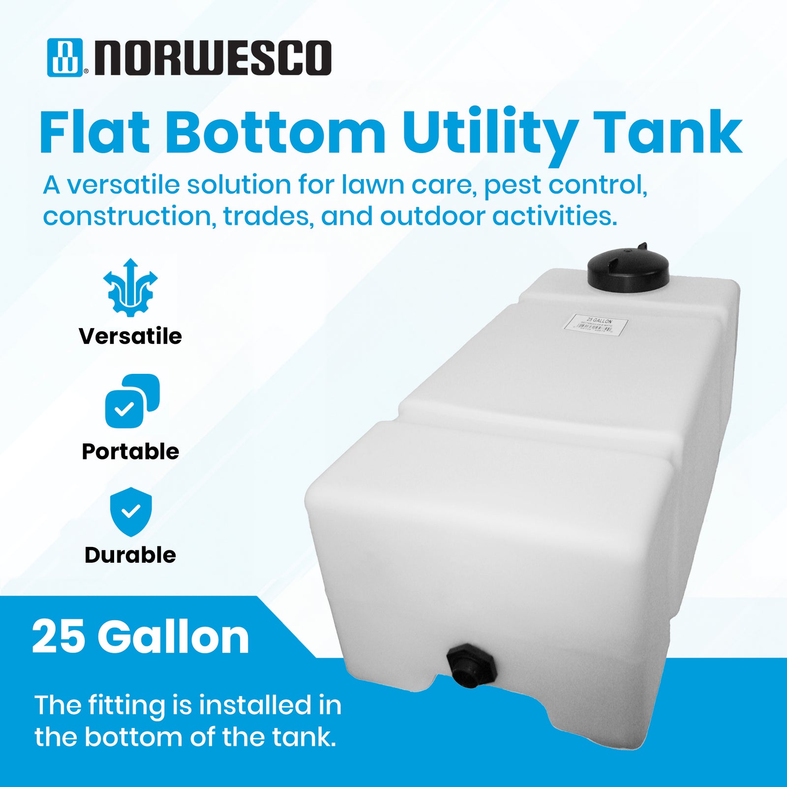 Norwesco Flat Bottom Utility Tank for Trailers and Lawn Care, 16 Gallon, White