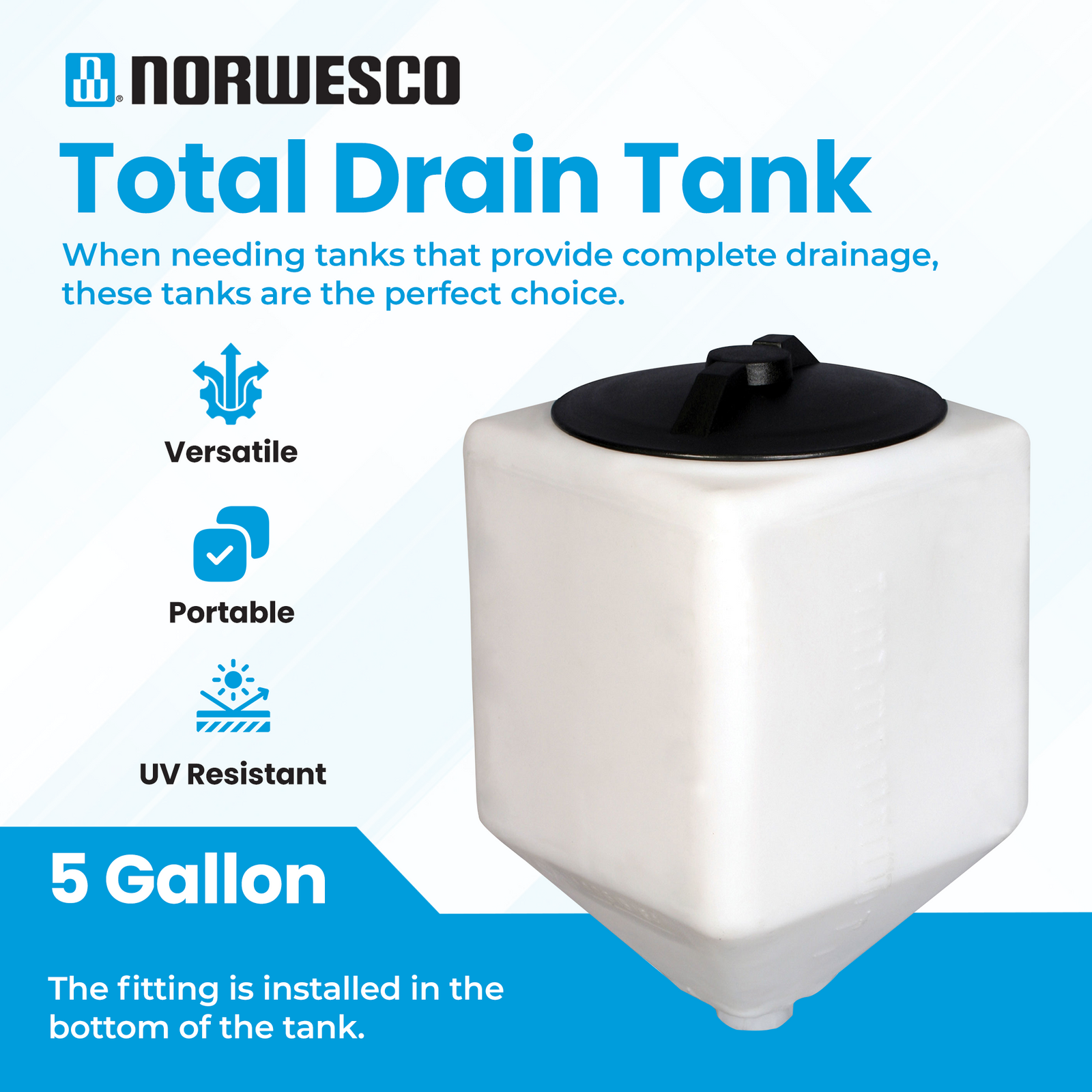 Norwesco 5 Gal Square Total Drain Tank for Patio, Lawn, & Garden (Open Box)