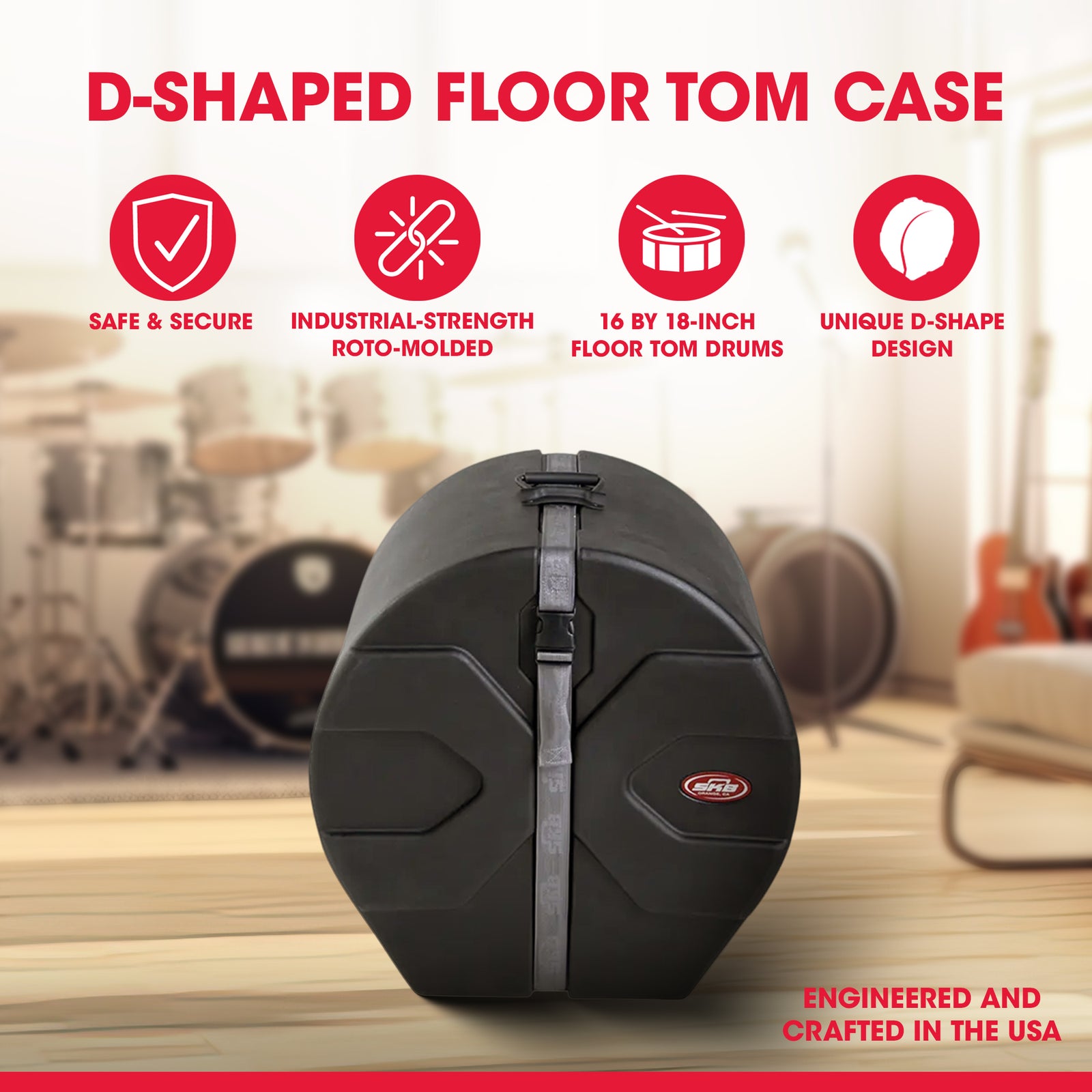 SKB 16" x 18" Floor Tom Case with Padded Interior and D-Shaped Drum Design