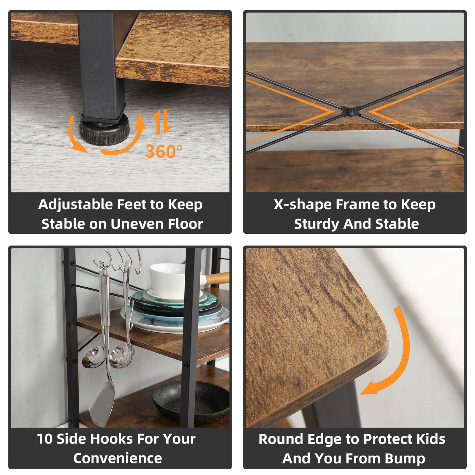 Somdot Baker's Rack 35.4 Inch 3 Tier and 4 Tier Microwave Stand, Rustic Brown