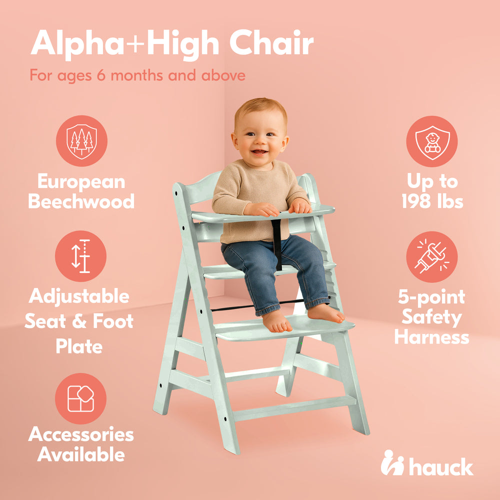 hauck Alpha+ Grow Along Adjustable Wooden Highchair, Beechwood, Mint (Open Box)
