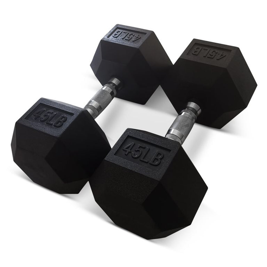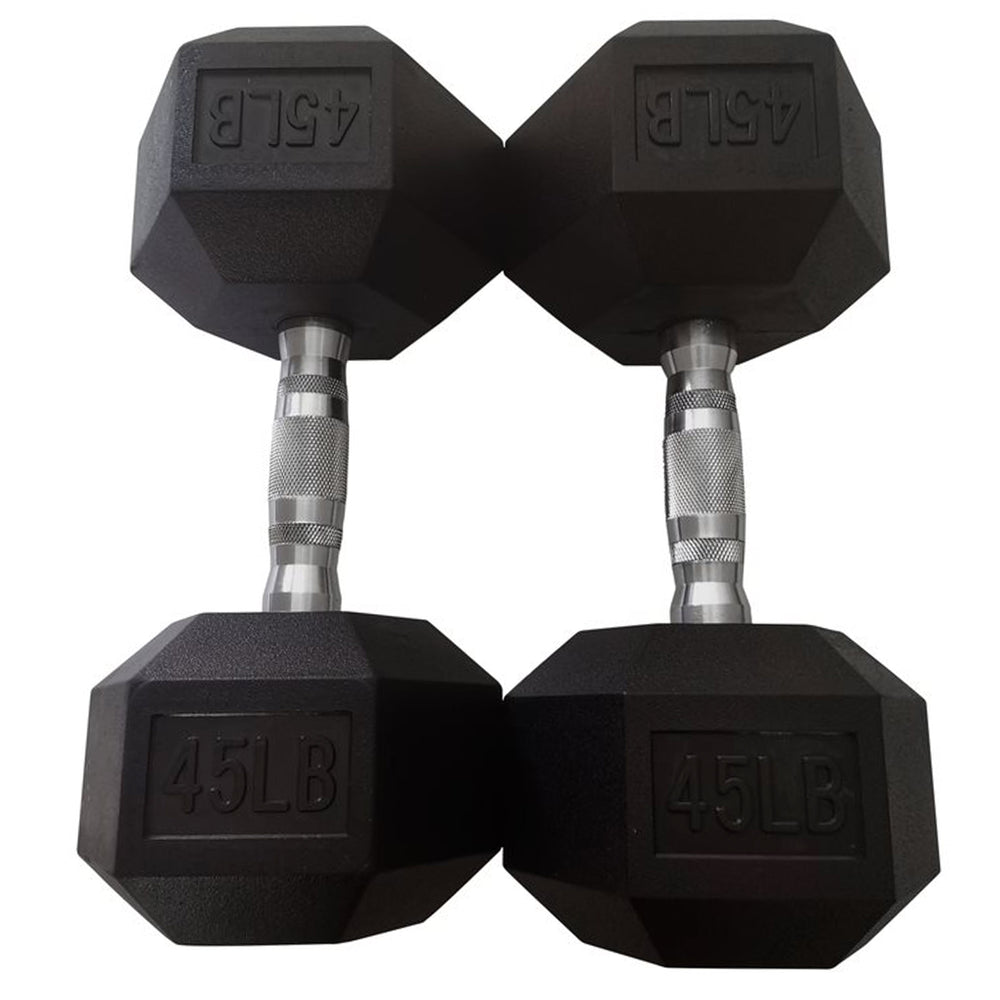 HolaHatha 10, 15, 25, 30 & 35 Lb Hexagonal Dumbbell Weight Set w/ Rack, Black