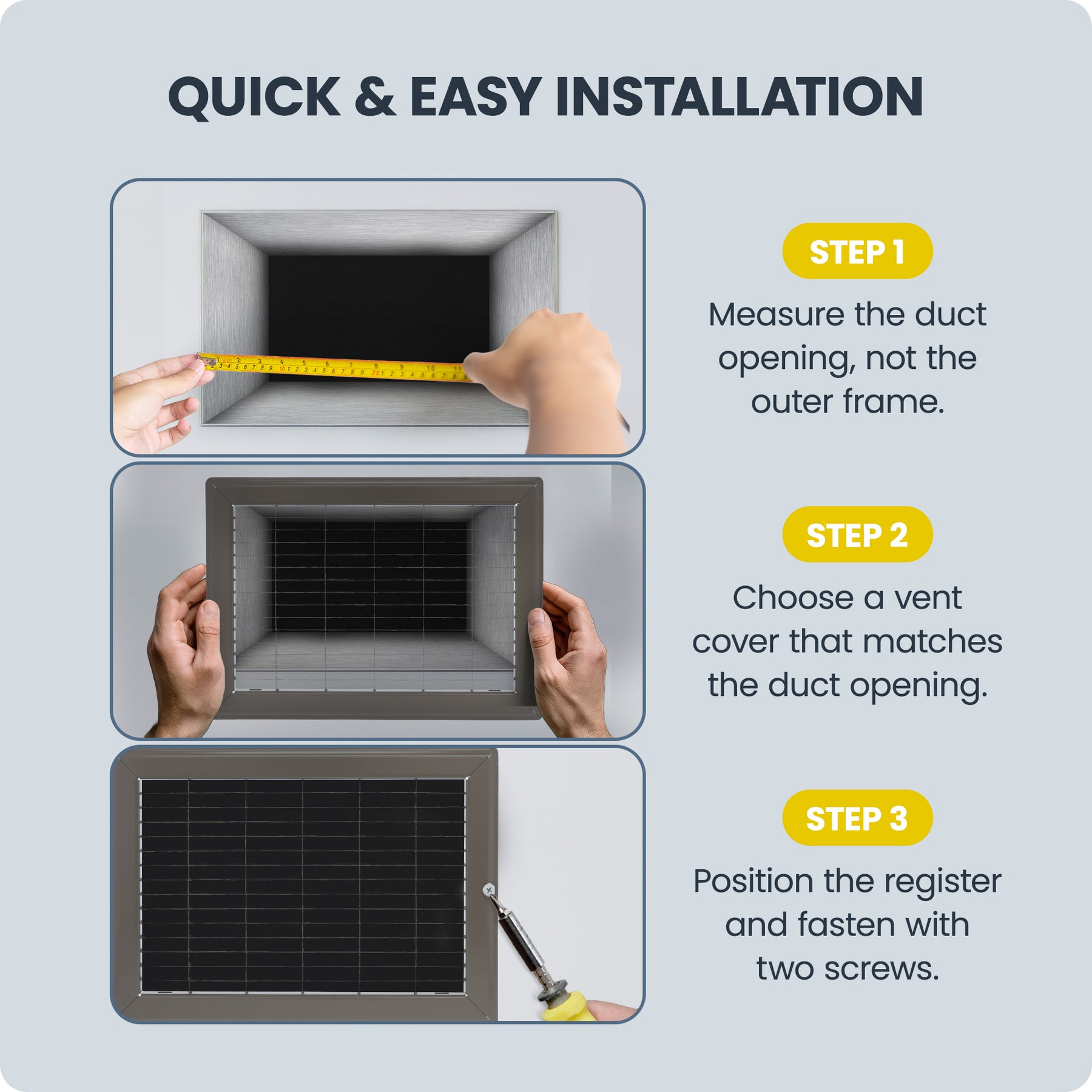 Installation is quick and hassle-free thanks to pre-drilled mounting holes, giving you a secure, stable fit in minutes. Whether you’re upgrading old vent covers or completing a new HVAC installation, the Hart & Cooley Heavy Duty Steel Floor Grille delivers strength, style, and performance you can trust since 1901.