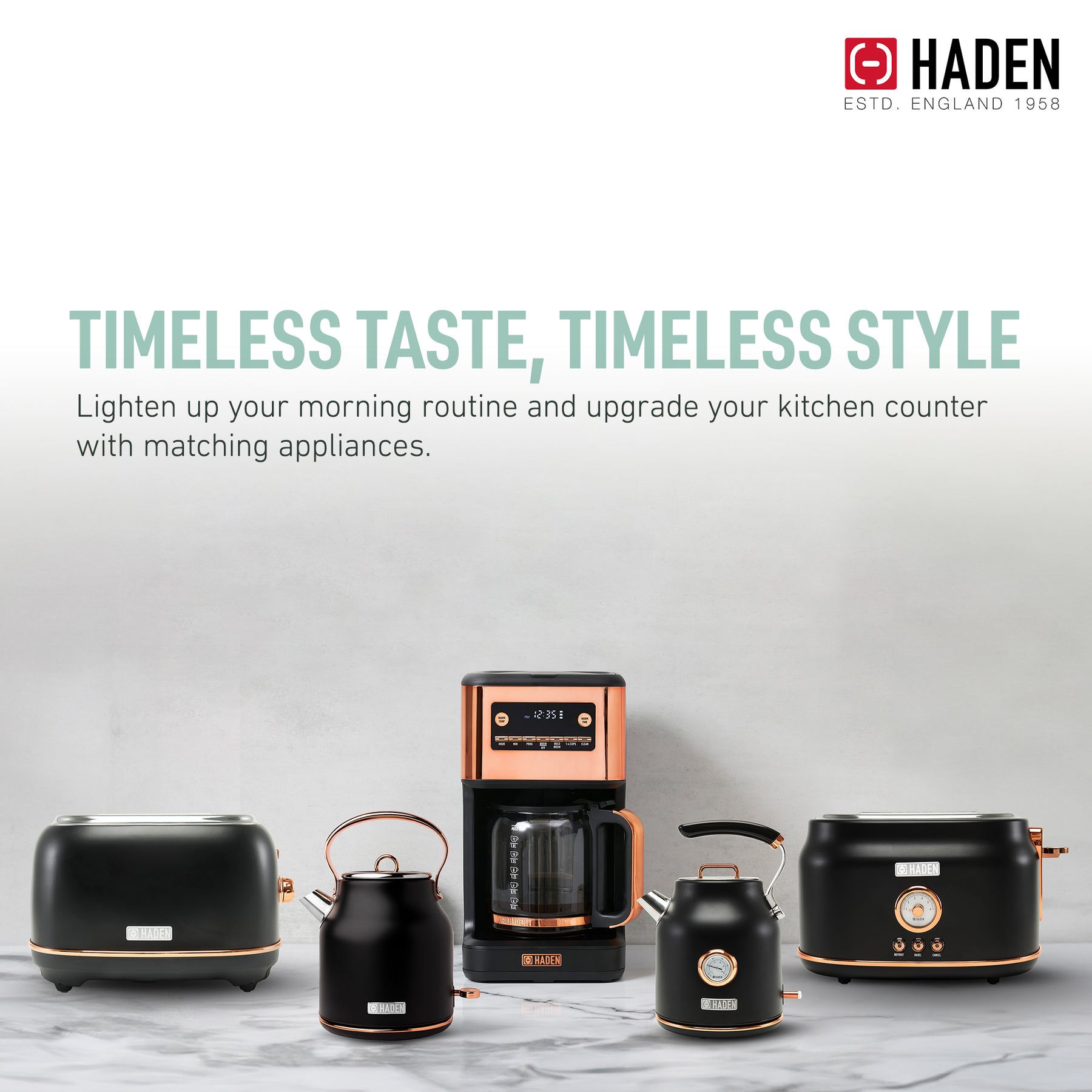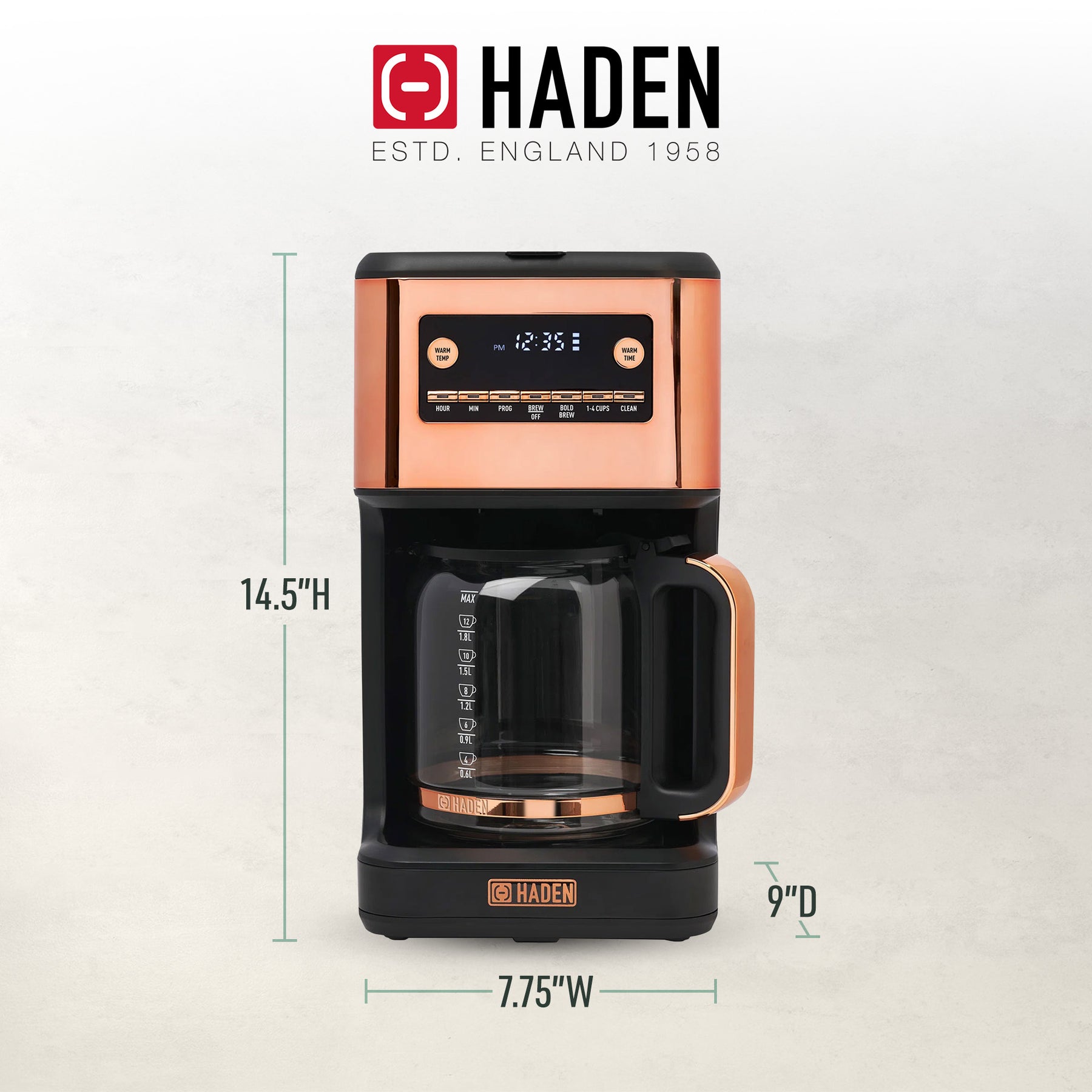 Haden Generous Brew 14 Cup Programmable Coffee Maker Pot, Black/Copper (Used)