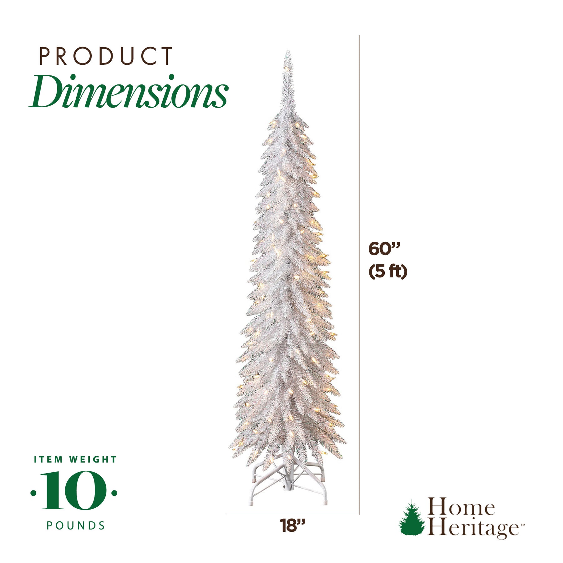 • Bring the holiday cheer into your home with this holiday Home Heritage 5 Foot Pencil White Iridescent Tinsel Prelit Artificial Christmas Tree with lights