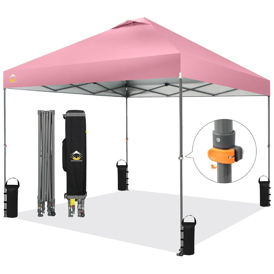 Crown Shades Pop Up Canopy, 10x10 ft Adjustable Tent w/One Push Setup, Pink (Used)